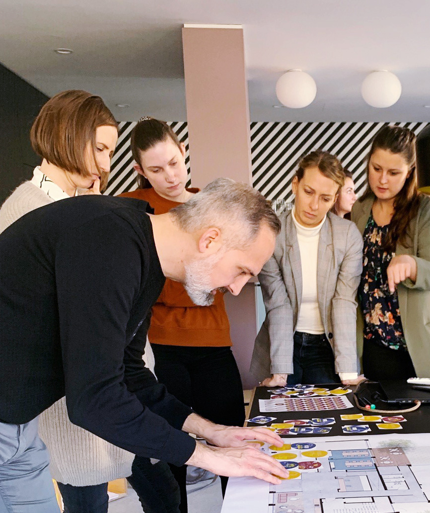 Die Mitarbeiterinnen und Mitarbeiter entwickeln in Workshops wertvollen Input für die zukünftige FLÜWO-Arbeitswelt. Für das Jahr 2022 ist der Umzug in das neue Verwaltungsgebäude geplant.